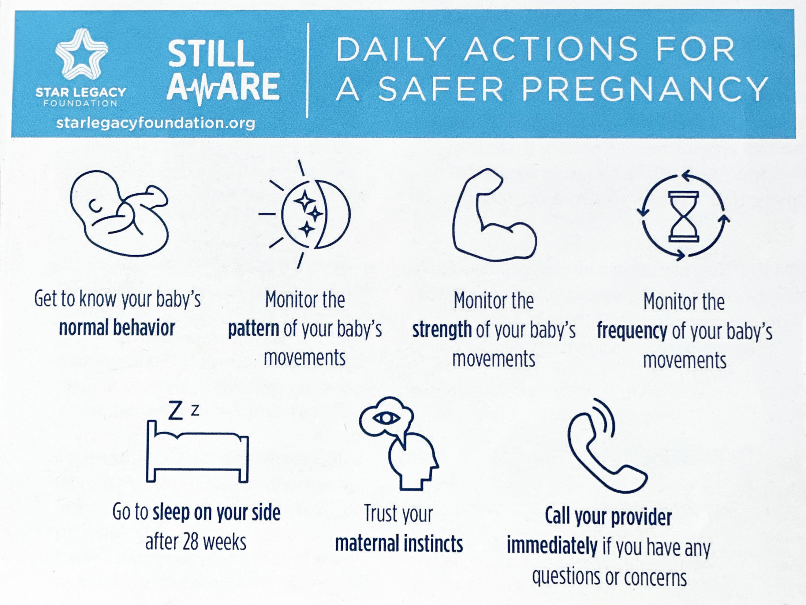 Conclusion: When I think about the patients I cared for who have had a stillborn baby, I recall that they often come in for evaluation of a different complaint, such as a labor check or a routine prenatal visit. When asked about it, they will sometimes say they last felt fetal movement several days before. This does not need to happen. Protocols have shown that when patients have received education about fetal activity, they will call sooner to report a potential problem. Not all stillbirths can be prevented, but being more aware of changes in your baby’s activity can be successful at minimizing your risk.